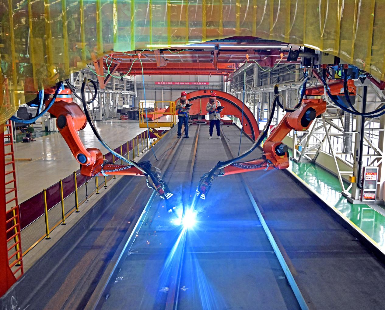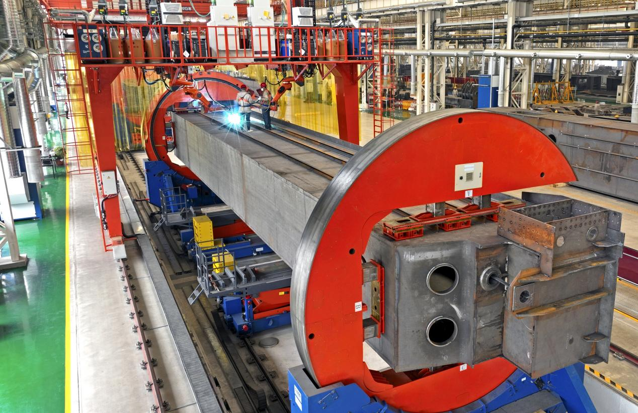 焊接中心采用精益生产理念,以先进性、可靠性为原则,新增性能优异的智能化焊接设备,工程机械智能焊接生产线、矿山产品智能焊接生产线、起重机主梁智能焊接生产线、焦化产品智能焊接生产线、筒类智能焊接生产线等15台套智能焊接设备,实现了所有产品区域化、成套化的生产,对原有搬迁改造的49台套设备全部实现智能化升级改造,配备 “烟尘治理+余热采暖”集成为一体的焊接烟尘设备,达到废气污染防治要求,实现“超超低”排放要求。